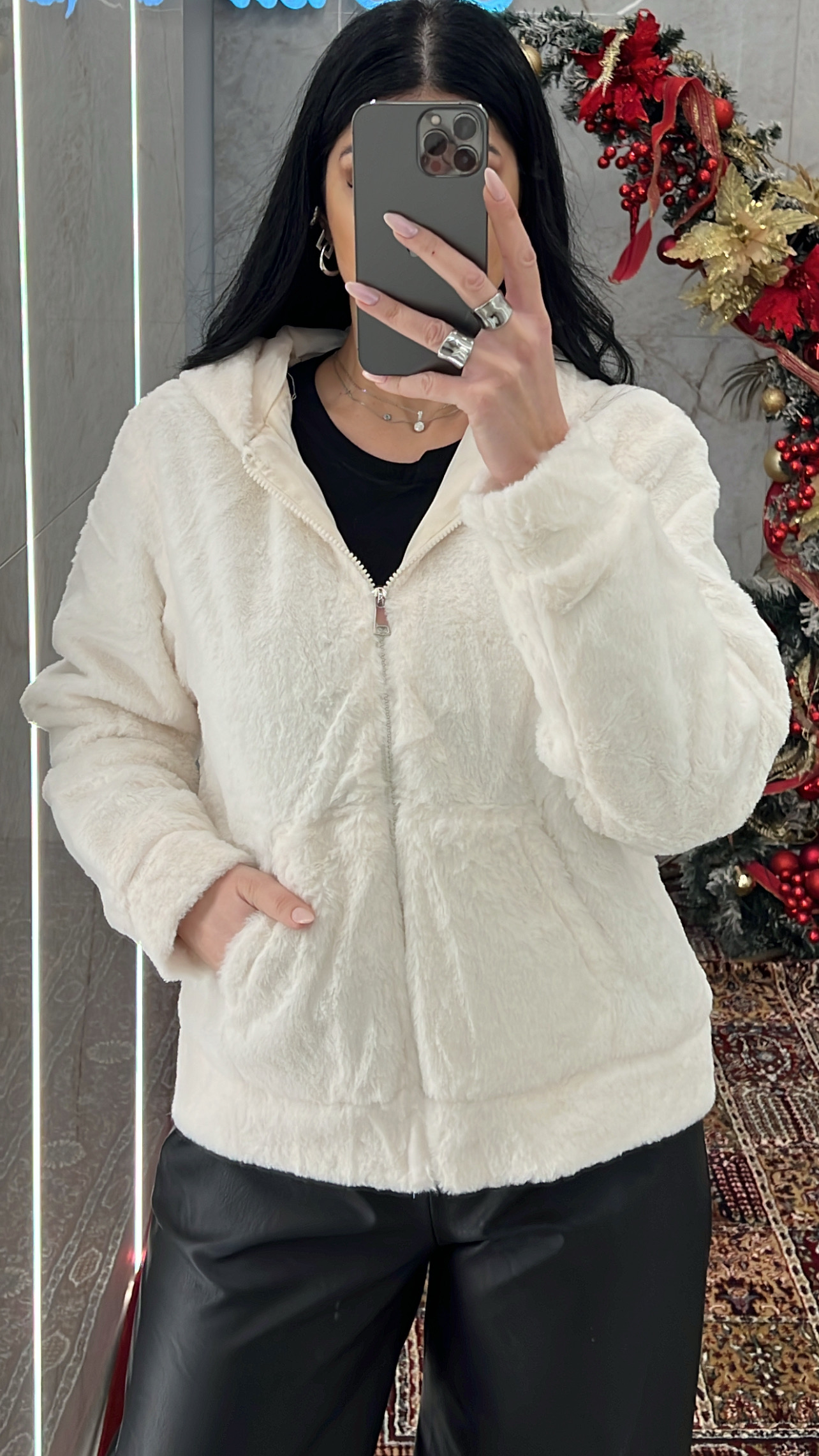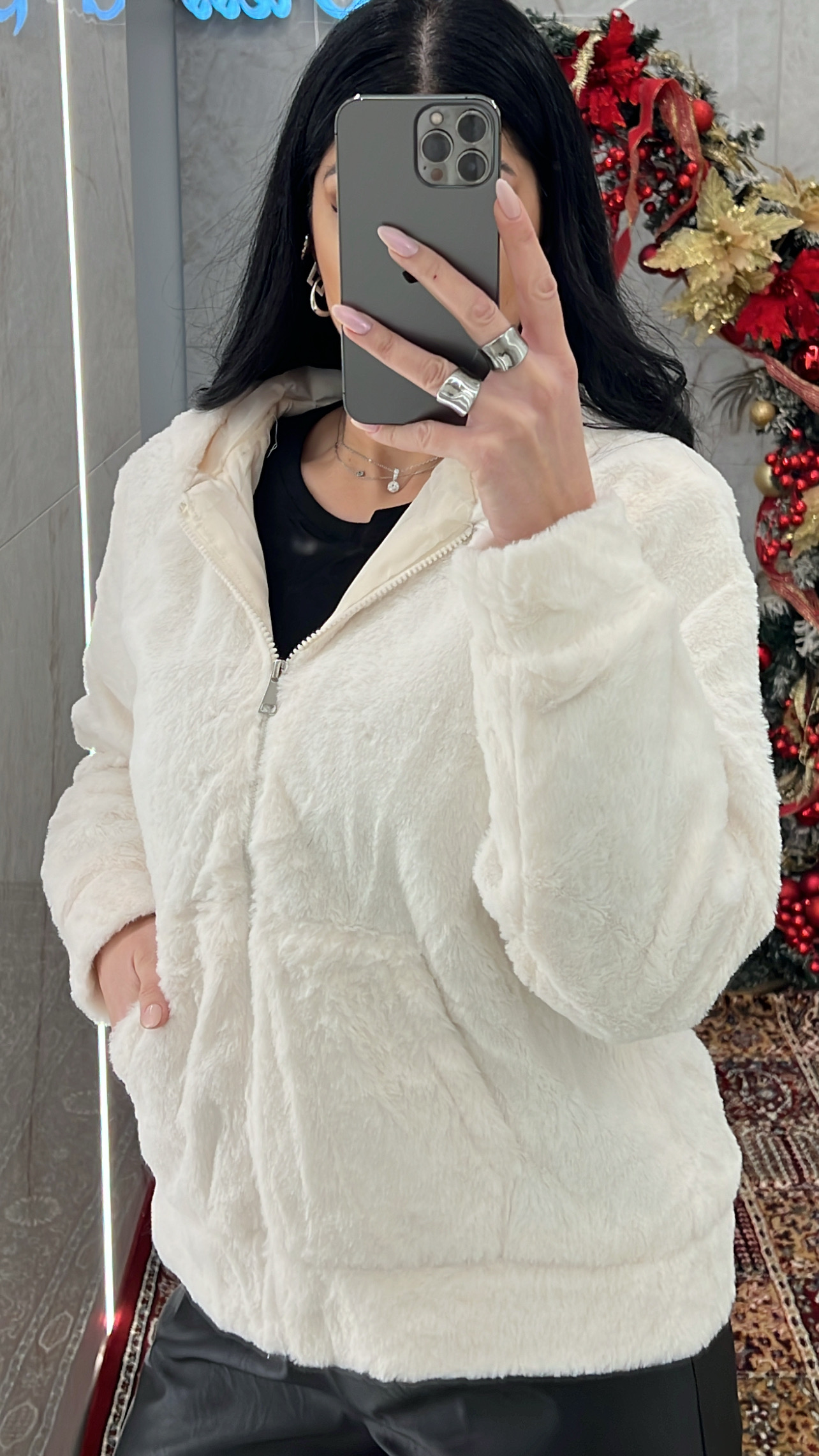 Ζακέτα γούνινη  φοδραρισμένη με τσέπες και κουκούλα