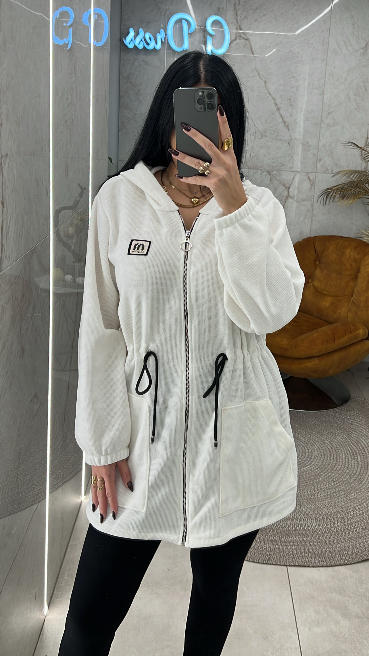 Ζακέτα Κοτλέ με Κορδόνι/Λευκό