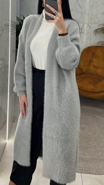 Ζακέτα μοχέρ μακριά 5175/Γκρι