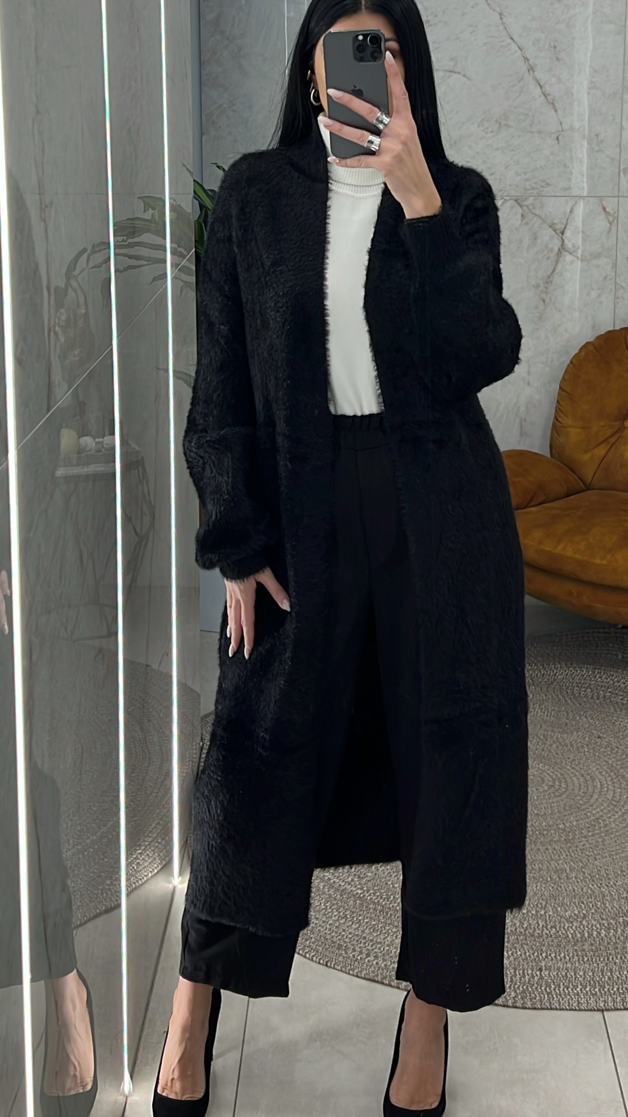 Ζακέτα μοχέρ μακριά 5175/Μαύρη