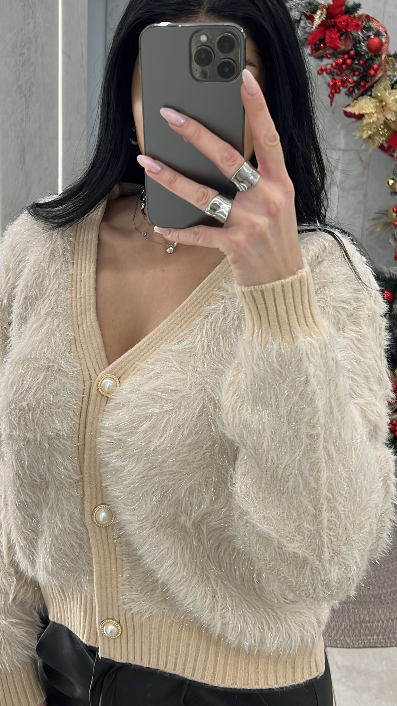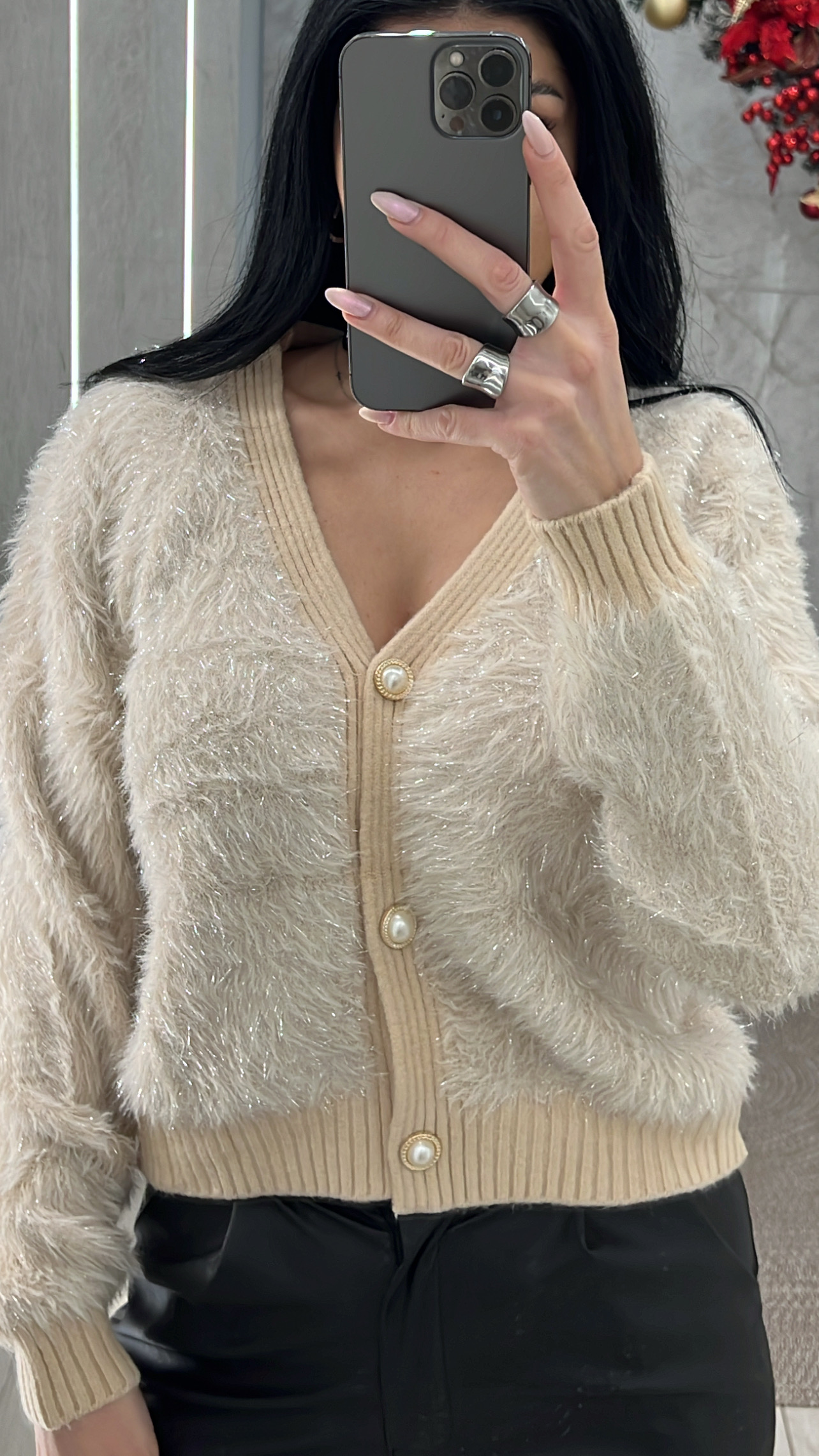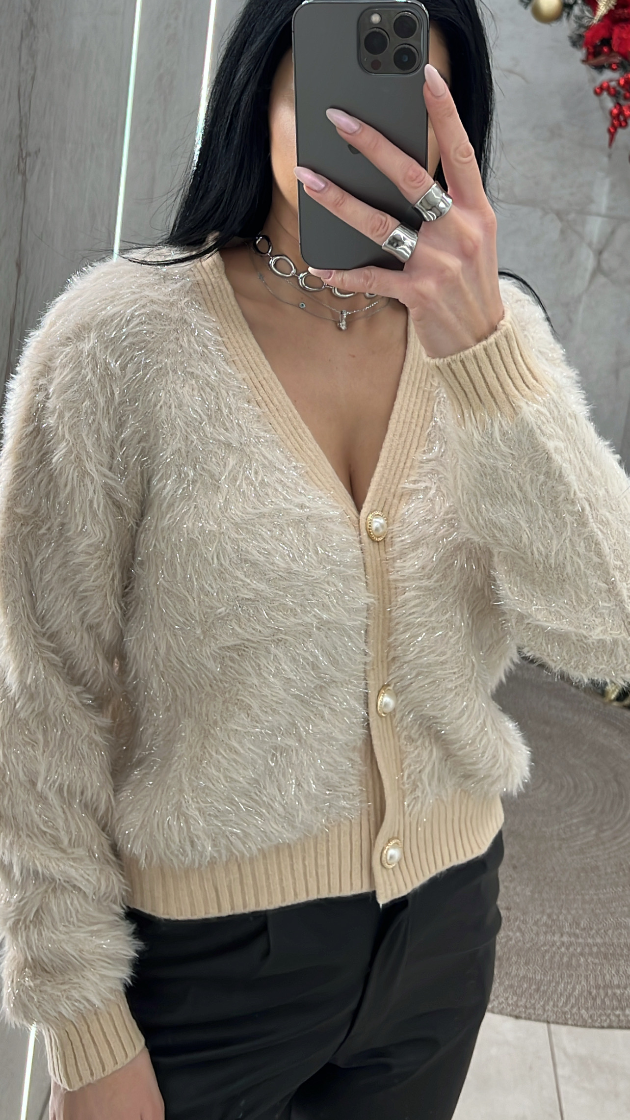 Ζακέτα Μοχέρ με ασημοκλωστή κλείνει με κουμπιά πέρλες