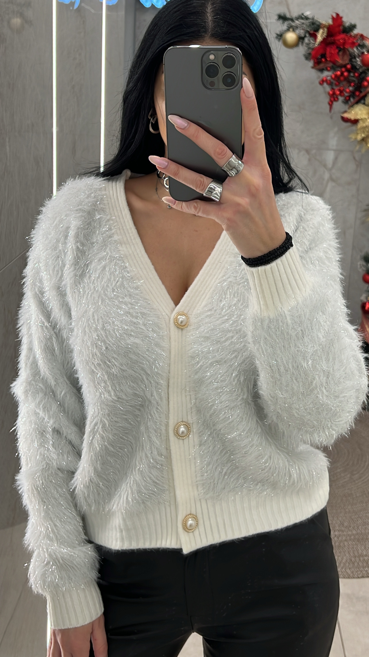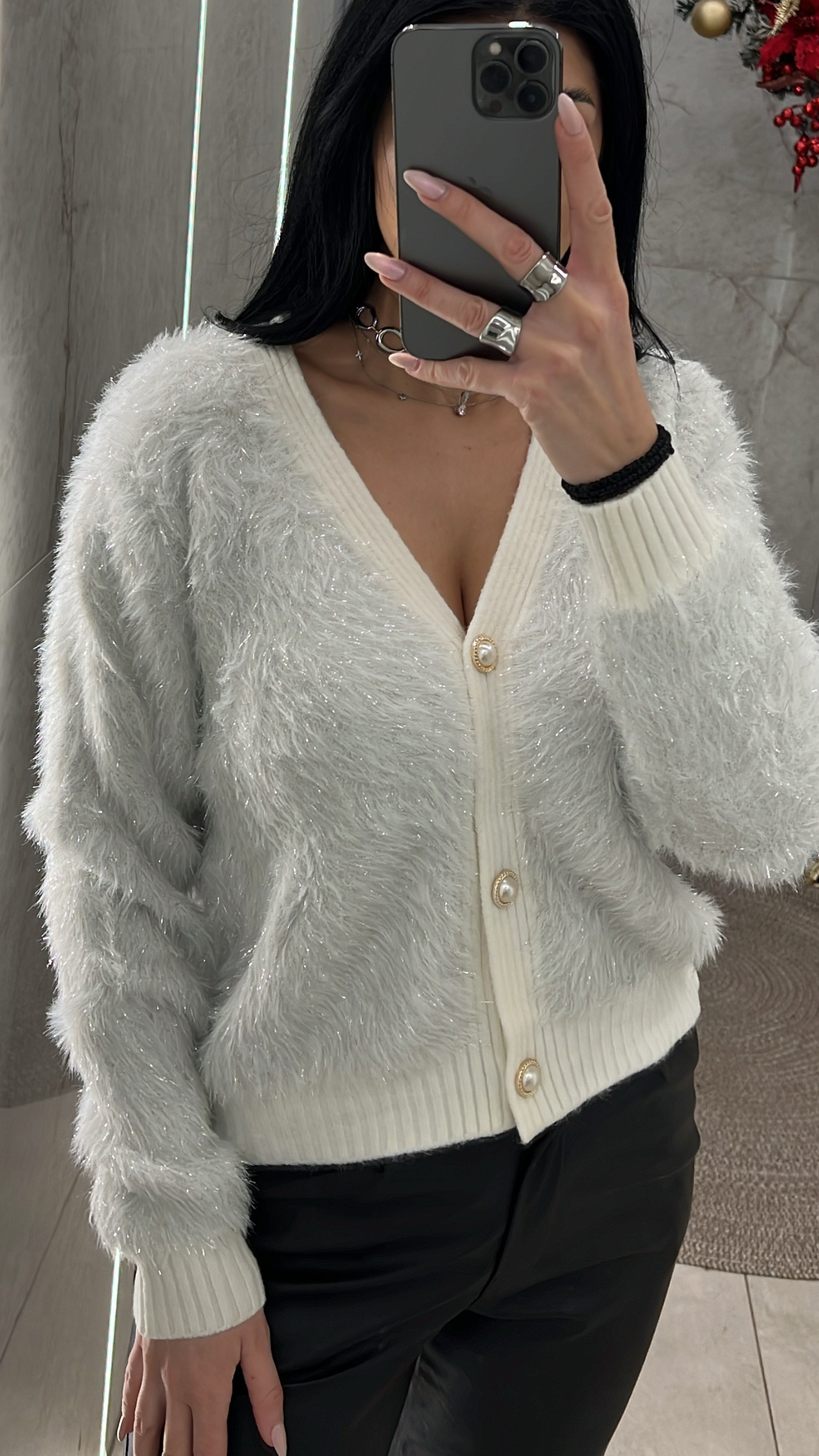 Ζακέτα Μοχέρ με ασημοκλωστή K6872/Εκρού