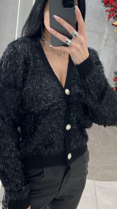 Ζακέτα Μοχέρ με ασημοκλωστή K6872/Μαύρο