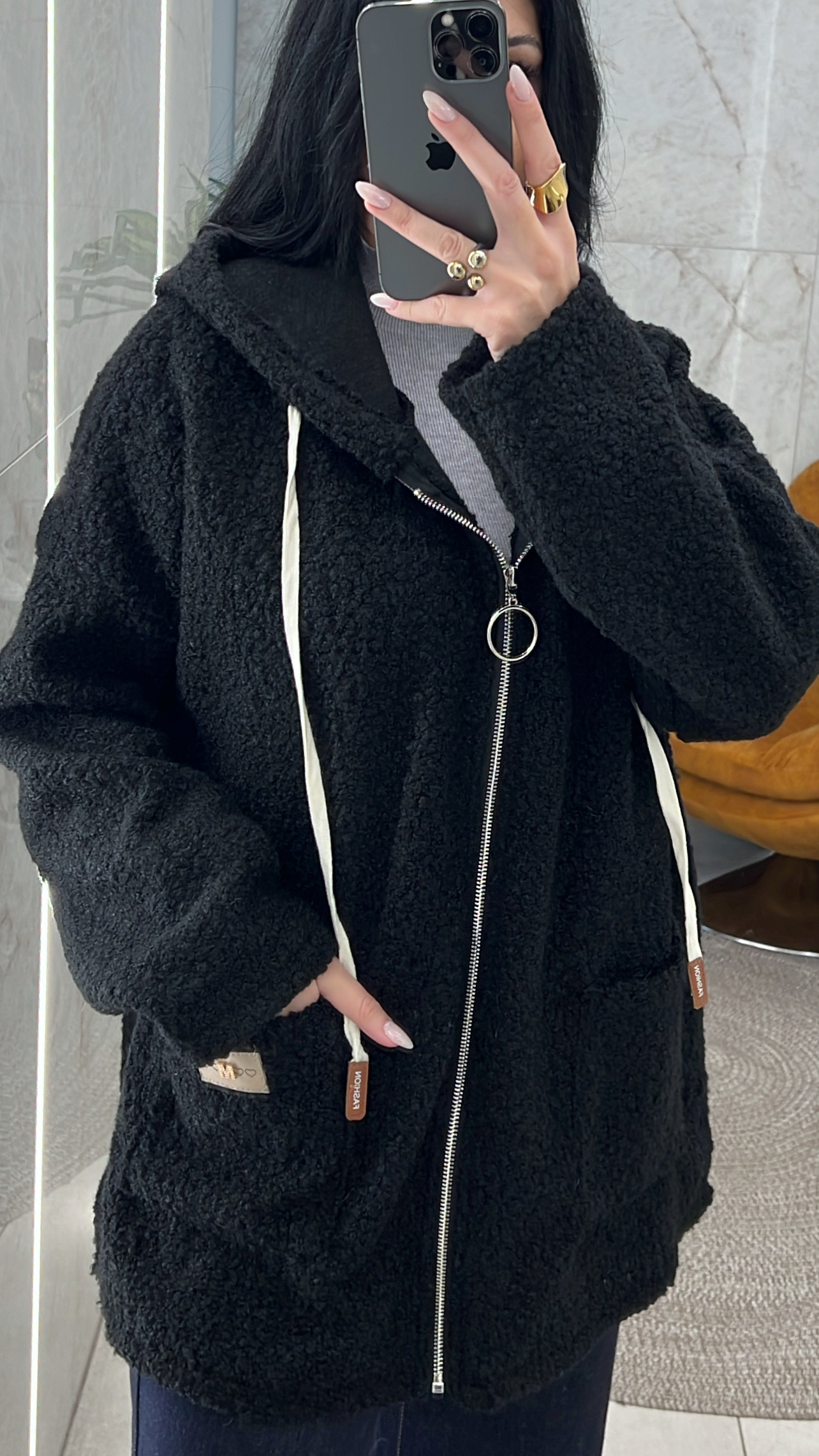 Ζακέτα Teddy Μπουκλέ 16063/Μαύρη