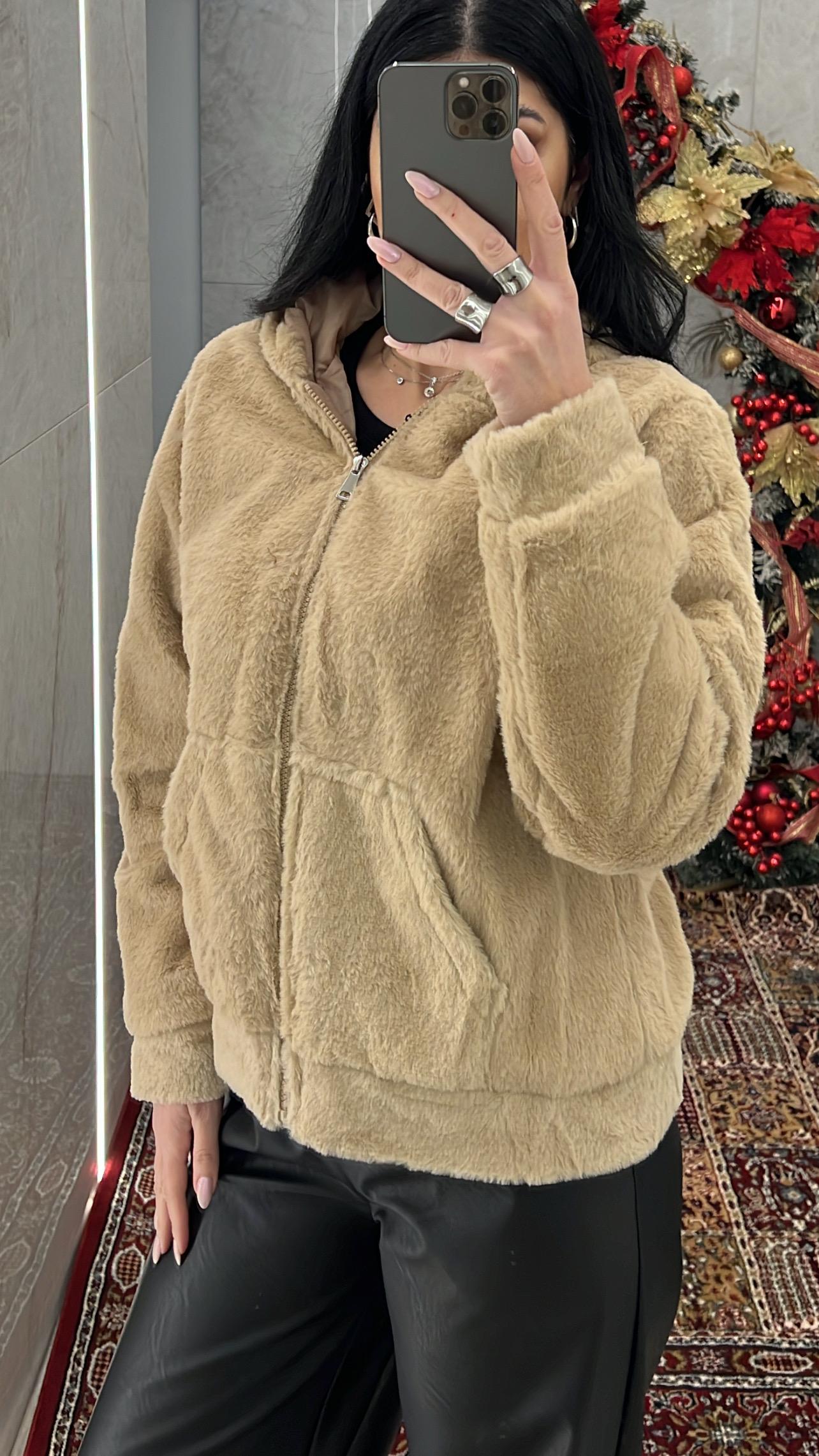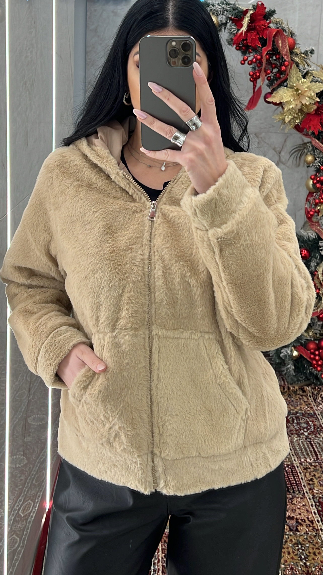 Ζακέτα γούνινη  φοδραρισμένη με τσέπες και κουκούλα
