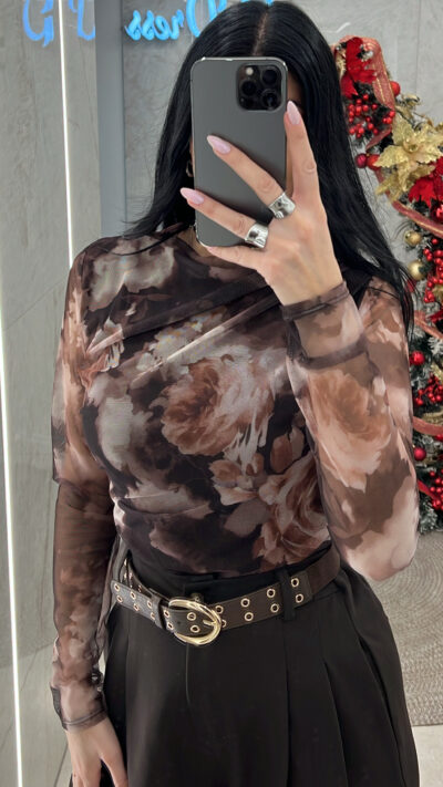 Μπλούζα Floral με Διαφάνεια 0665/Καφέ
