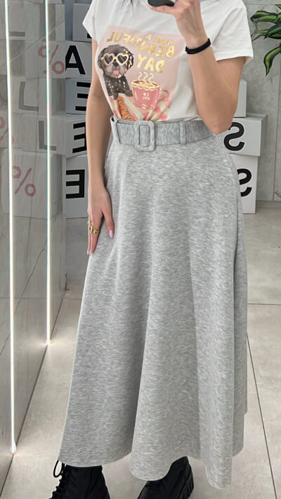 Midi Φουστα Με Ζώνη 600998/ Γκρι