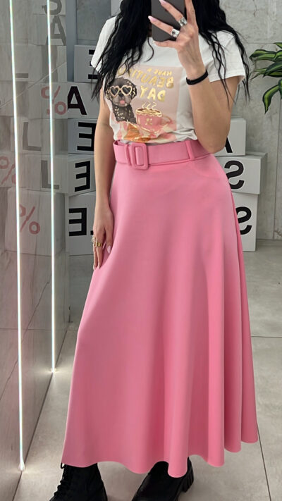 Midi Φουστα Με Ζώνη 600998/ Ρόζ