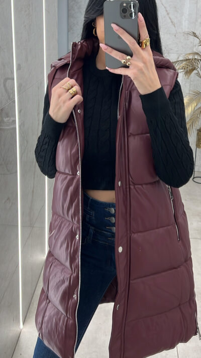 Αμάνικο Μπουφάν Δερματίνη/Μπορντό