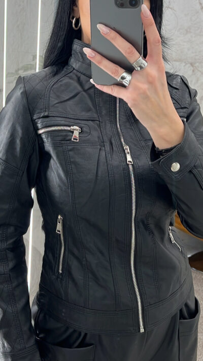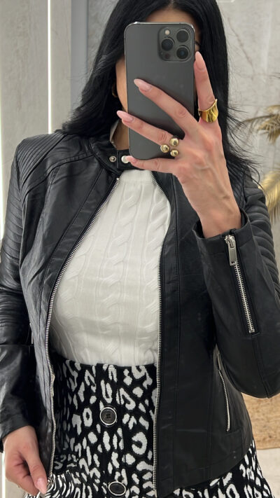 Τζάκετ Mao Δερματίνη/Μαύρο