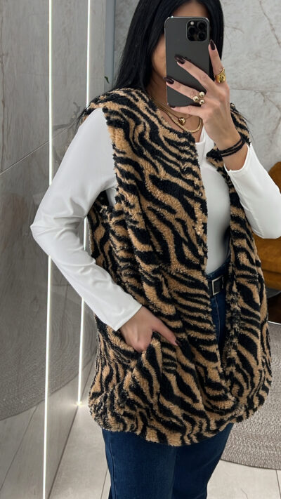 Αμάνικο Γιλέκο J6161/Animal Print Καφέ-Μαύρο
