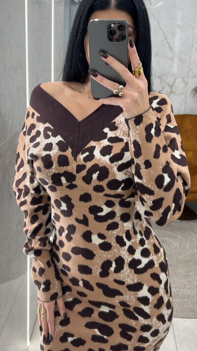 Φόρεμα 16178/Λεοπάρ Καφέ