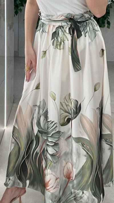 Φουστα Φλοραλ Σατεν 300989/ Χακι