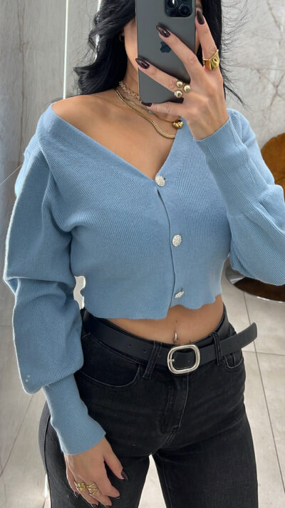 Μπλούζα Πλεκτή με Στρας G293/Γαλάζιο