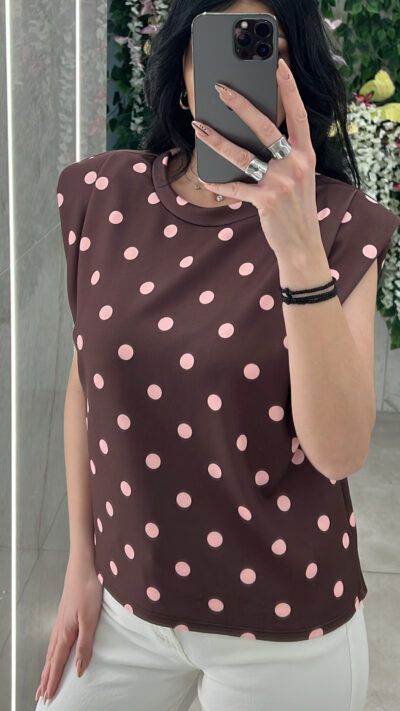 Μπλούζα με βάτες πουά 26095/Καφέ