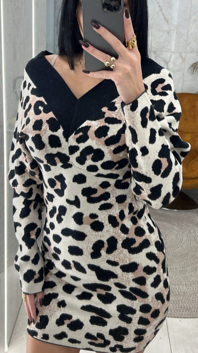 Φόρεμα Animal Κρουαζέ/Λεοπάρ