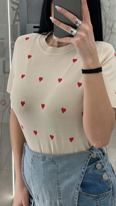 Μπλούζα Πλεκτή Με Καρδιες G610/ Μπέζ