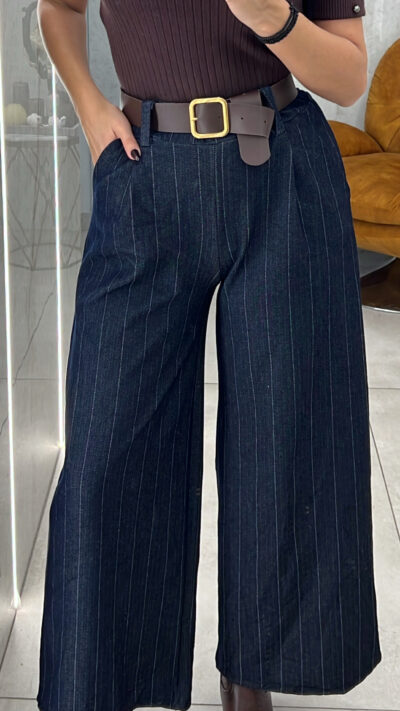 Τζιν Ψηλόμεσο με Ζώνη-8227/Μπλε