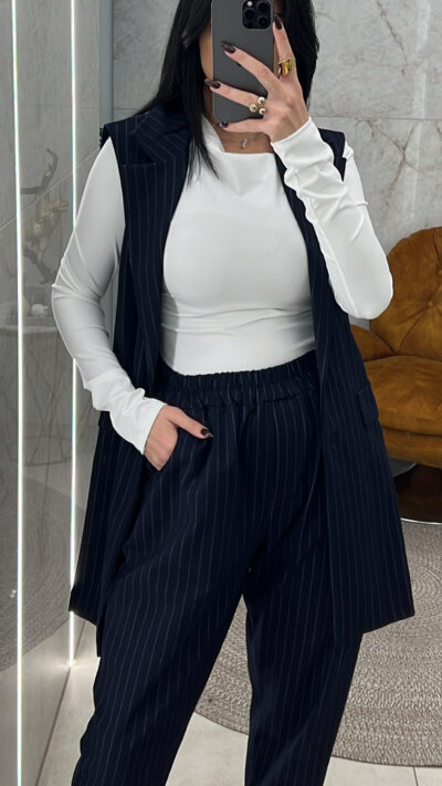Αμάνικο γιλέκο με ρίγα 41831/Μπλε
