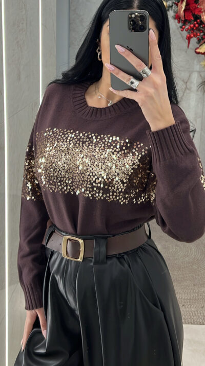 Μπλούζα πλεκτή με στρας 9694/Καφέ
