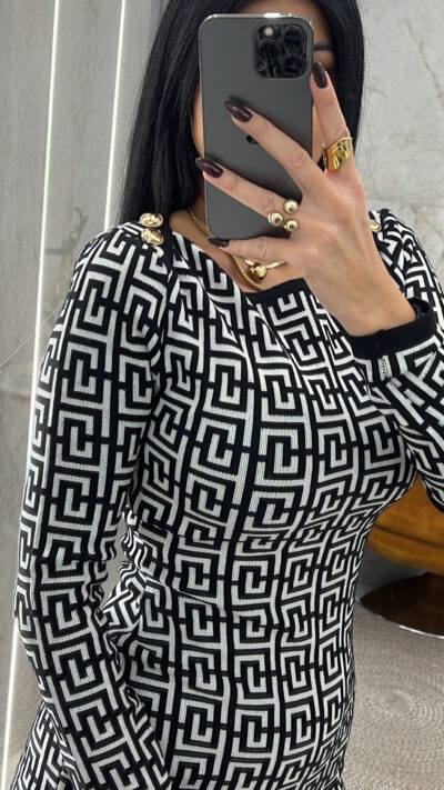 Φόρεμα Πλεκτό Αγκράφα/Λευκό