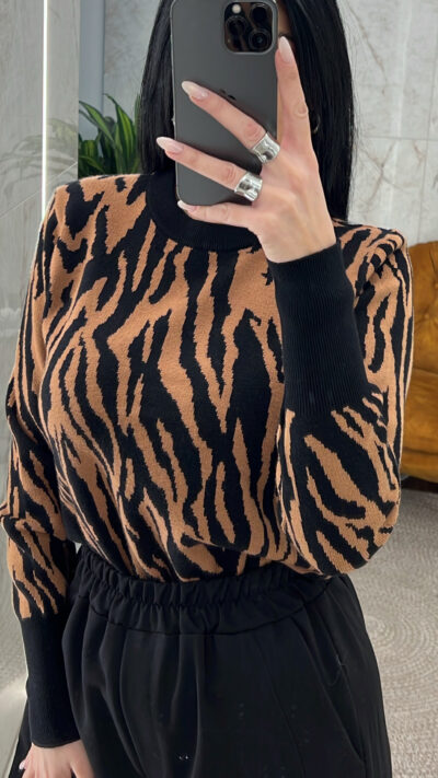 Μπλούζα πλεκτή ζέβρα/Καφέ