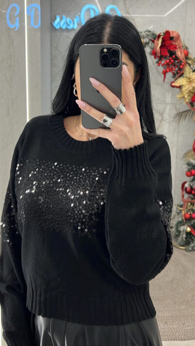 Μπλούζα πλεκτή με στρας 9694/Μαύρο