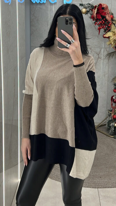 Μπλούζα Ζιβάγκο Oversized JK8521/Καφέ-Μαύρο