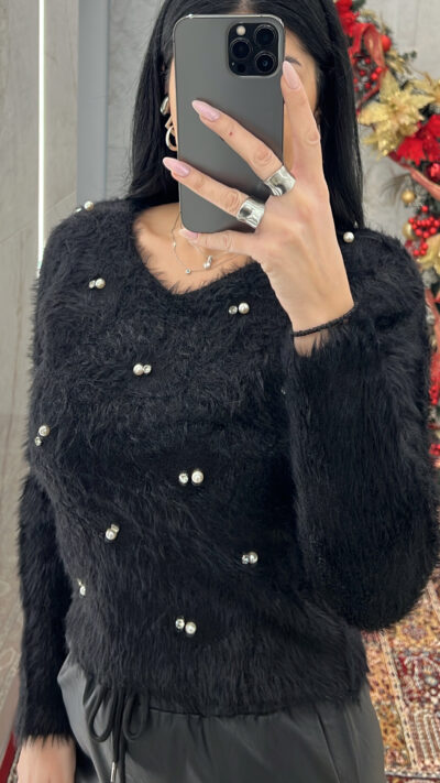 Μπλούζα μοχέρ με πέρλες 2587/Μαύρο