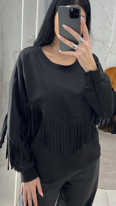 Μπλούζα Φούτερ με Κρόσια/Μαύρο