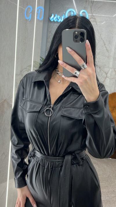 Ολόσωμη Δερματίνη Ζωνάκι/Μαύρο