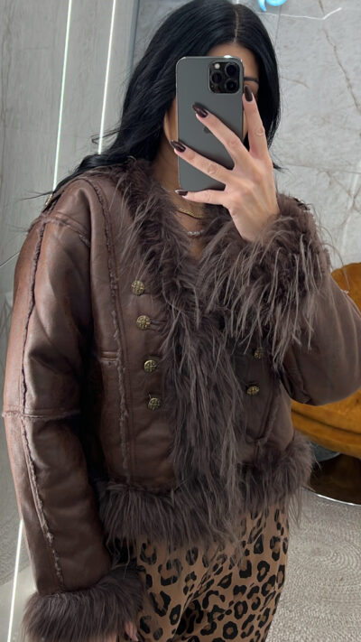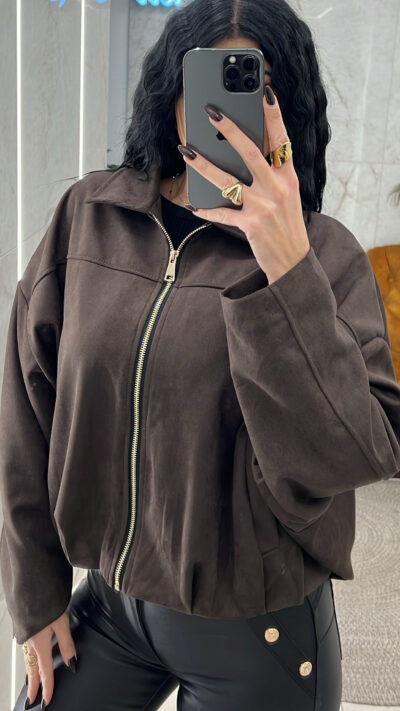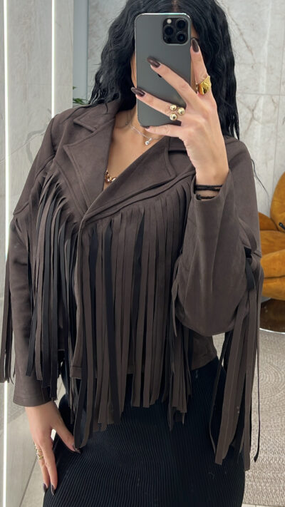Τζάκετ με κρόσια suede 21698/Καφέ