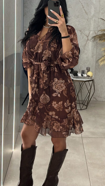 Φόρεμα Μίνι Καμπάνα Μανίκι/Καφέ