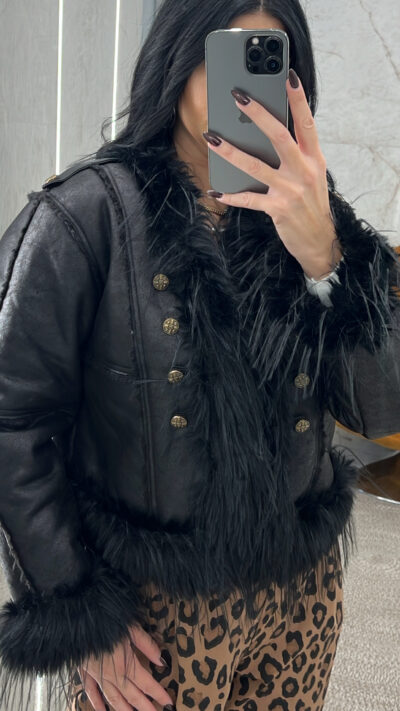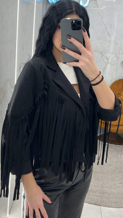 Τζάκετ με κρόσια suede 21698/Μαύρο